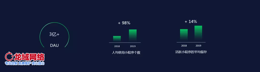 在这次公开课上,微信也首度公布了小程序的相关数据,成立三年,日活用户数超过3亿,人均访问小程序次数上涨45%,用户使用小程序次日留存率达59%,累积创造8000多亿交易额。